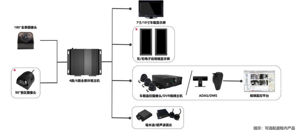 工程车、特种车360全景环视安全驾驶辅助系统通过安装在车身前、后、左、右的多个超广角夜视摄像头采集车周影像据,依托高科技视频影像处理技术,拼接成自然、真实、色彩平衡的全景图像,消除因车身遮挡导致的驾驶盲区,辅助驾驶者更安全便捷地操控车辆。可用于公交、大巴、重卡、搅拌车、推土机、清洁车、矿车、泥头车等各种车型。