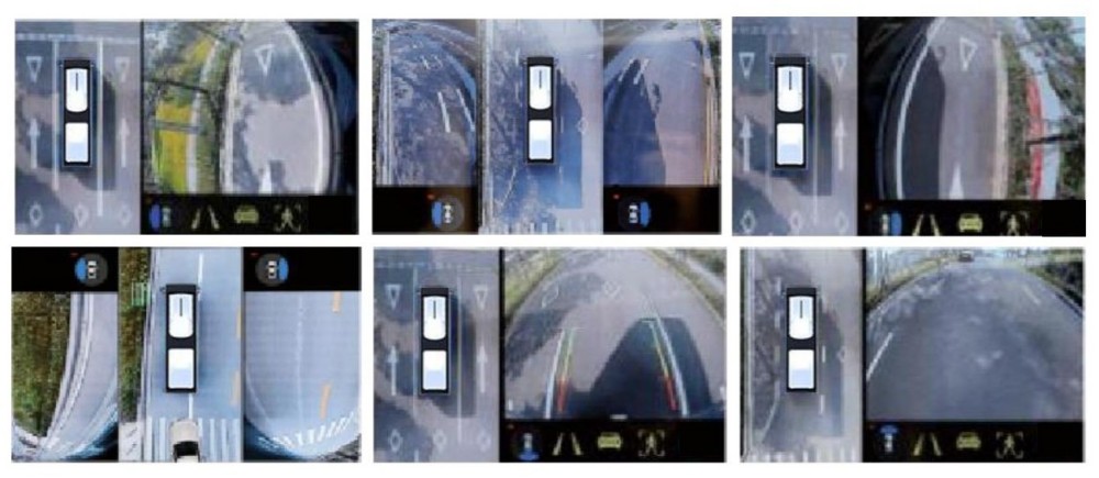 系列提供六种不同的视图模式,分别为前视行车视图、倒车后视视图、左侧行车视图、右侧行车视图、双边前视图(狭窄路段驾驶辅助)、双边后视图(狭窄路段驾驶辅助),以应对不同路况。同时,在全景视图和前后单视图中还提供智能轨迹线和倒车指示线,为用户行车、泊车提供精确指引。